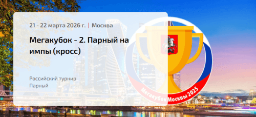 Бридж: Мегакубок — 2. Парный на импы (кросс)